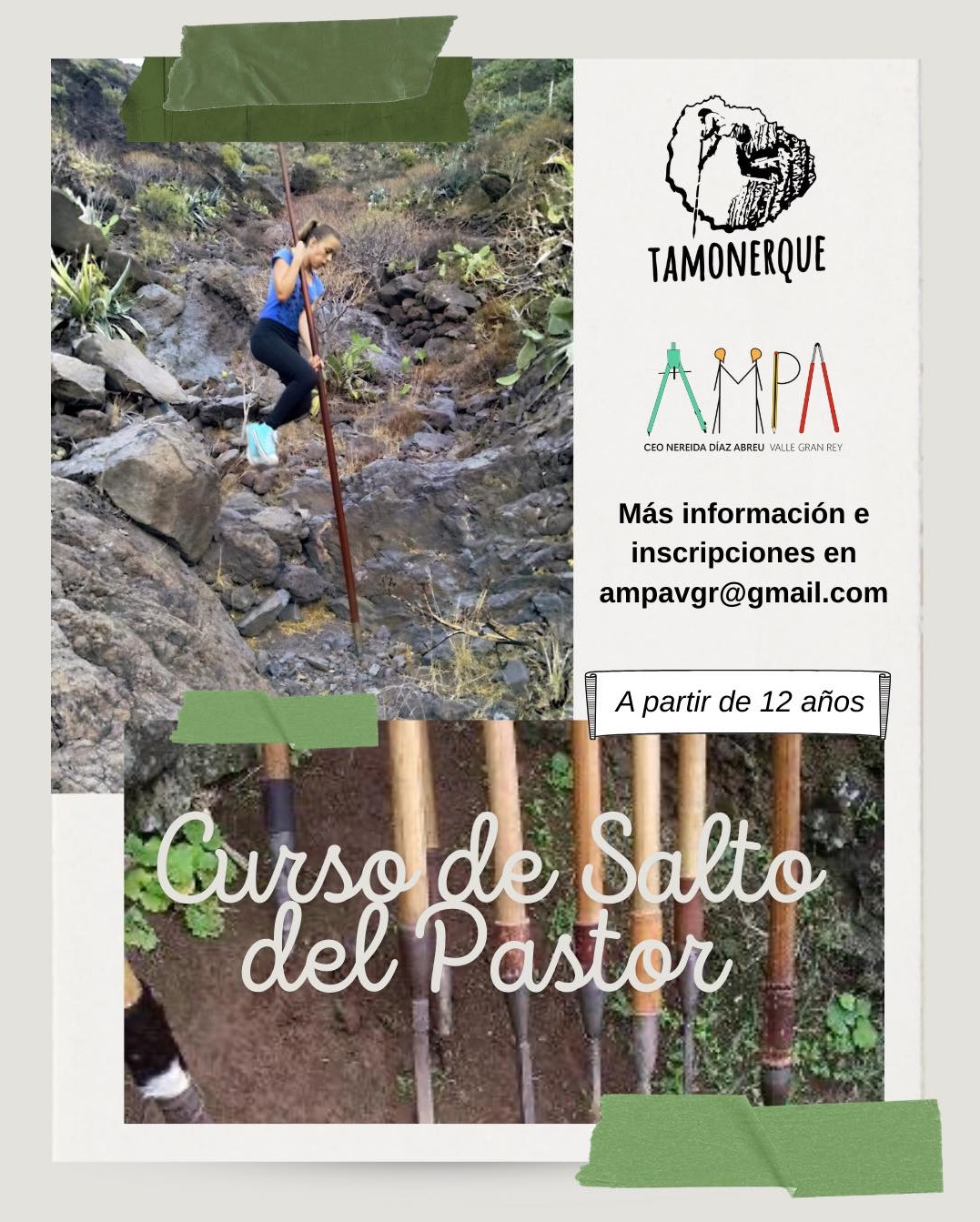 2026. Proyecto Didáctico y Curso de Iniciación al Salto del Pastor Canario con Niños y Jóvenes 2026 – AMPA del CEO Nereida Díaz Abreu de Valle Gran Rey y Jurria Tamonerque – La Gomera (Febrero y Marzo de 2026).